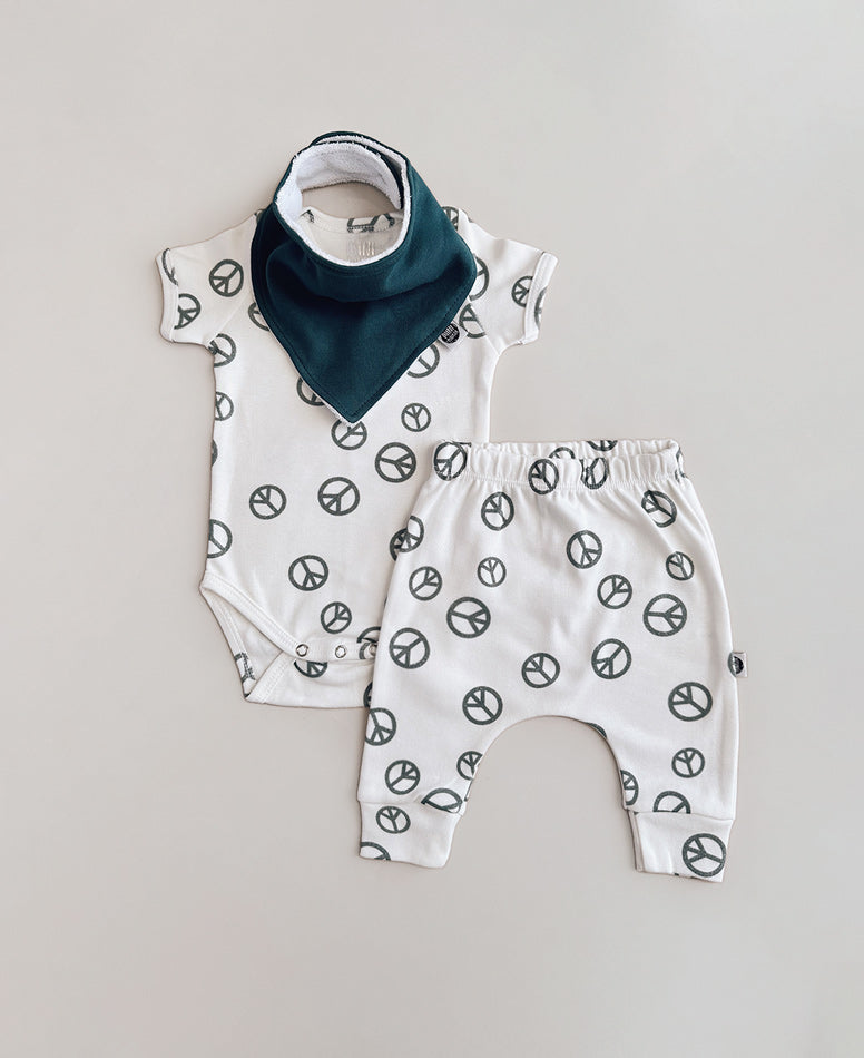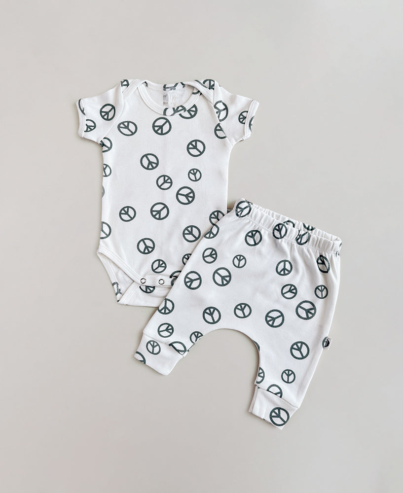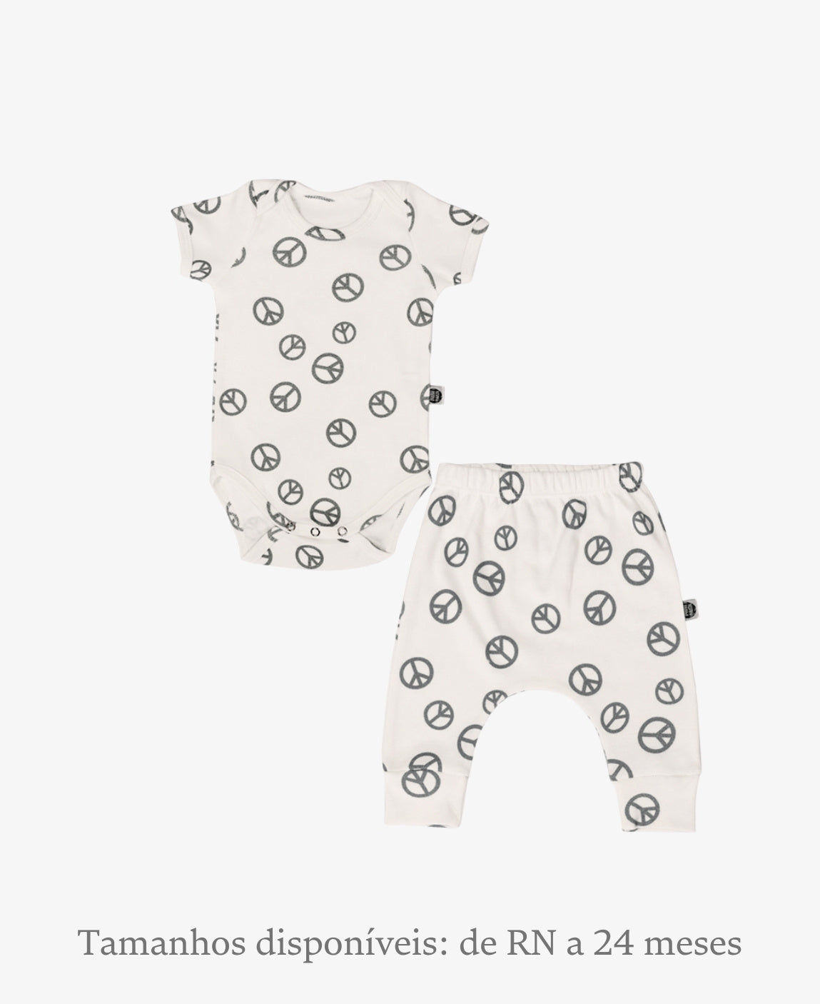 Conjunto Body Manga Curta e Calça Bebê Unissex | Peace and Love