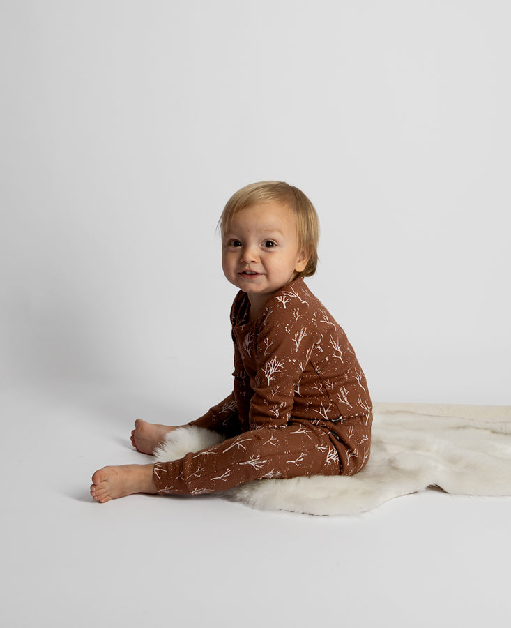 Feito para bebês meninos e meninas, é um conjunto unissex, com modelagem confortável e toque suave, ideal para quem busca roupas de bebê neutras, minimalistas e sustentáveis.