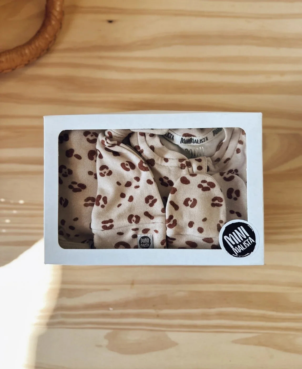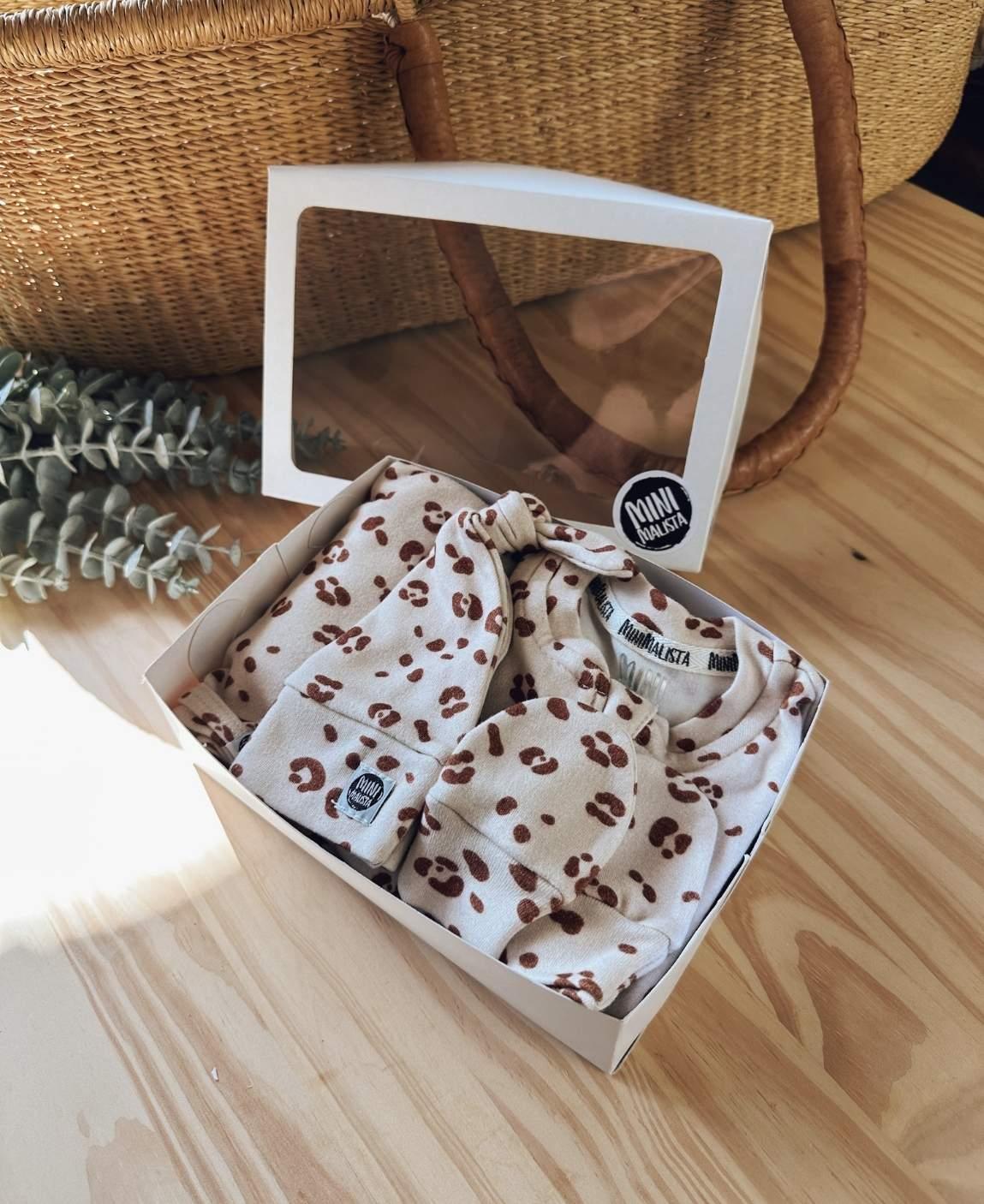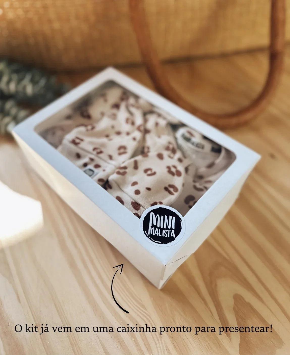 Kit Presente Saída de Maternidade Bebê 4 Peças | Estampa Jaguar – com Caixa Presente