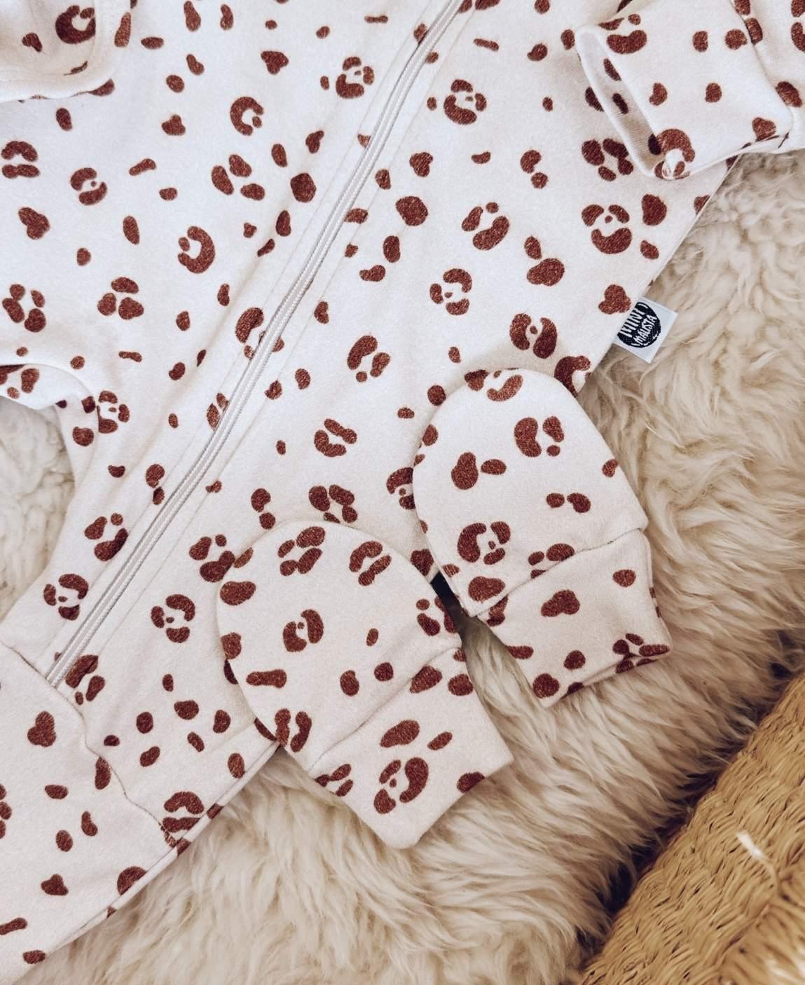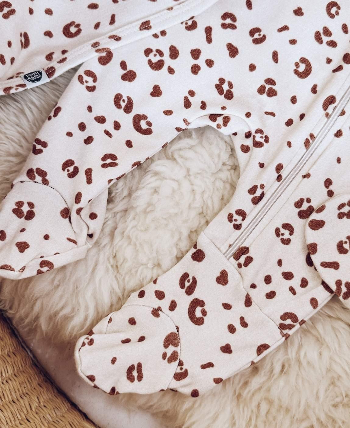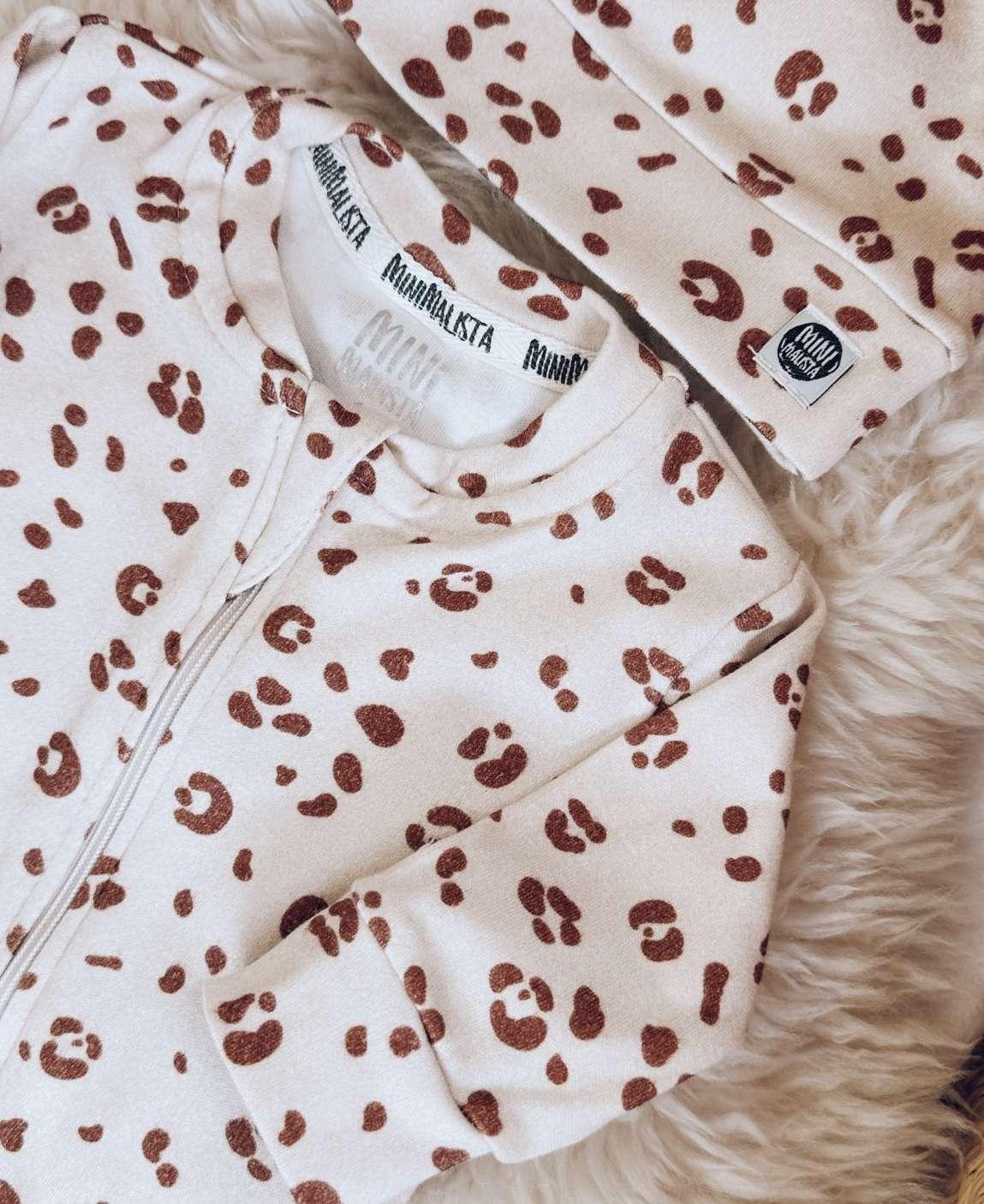 Inspirado na elegância natural dos filhotes selvagens, o conjunto traz uma estampa exclusiva de manchinhas terrosas, que transmite força, leveza e sofisticação.