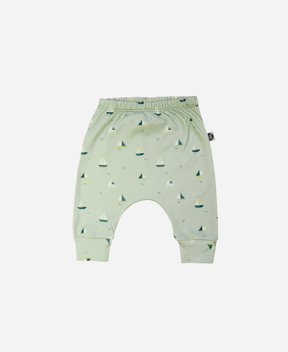 A Calça Harém de Bebê Unissex | Boats traz leveza e frescor para os dias de verão. Com fundo verde claro e delicados barquinhos, essa estampa é uma das favoritas para quem veste meninos, sem deixar de ser neutra e atemporal. A modelagem harém oferece liberdade de movimento e conforto total, enquanto o algodão macio e respirável cuida da pele sensível do bebê. Uma peça prática, confortável e perfeita para acompanhar os pequenos em momentos leves e cheios de descobertas.