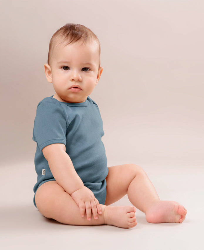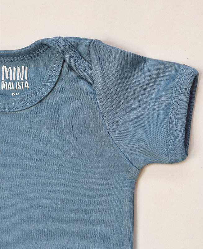 Body de Bebê Manga Curta Unissex | Liso Azul Retrô