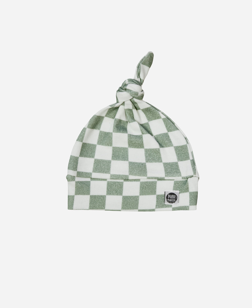 Touca de recém-nascido Racer Verde com xadrez moderno e estética minimalista