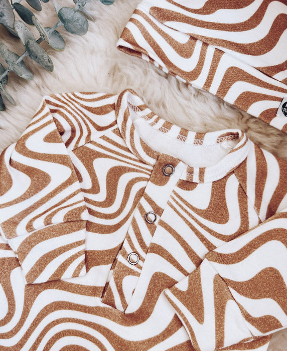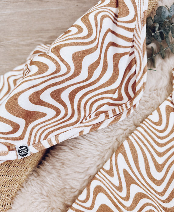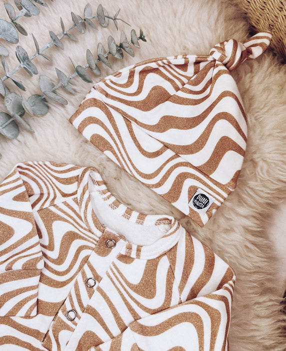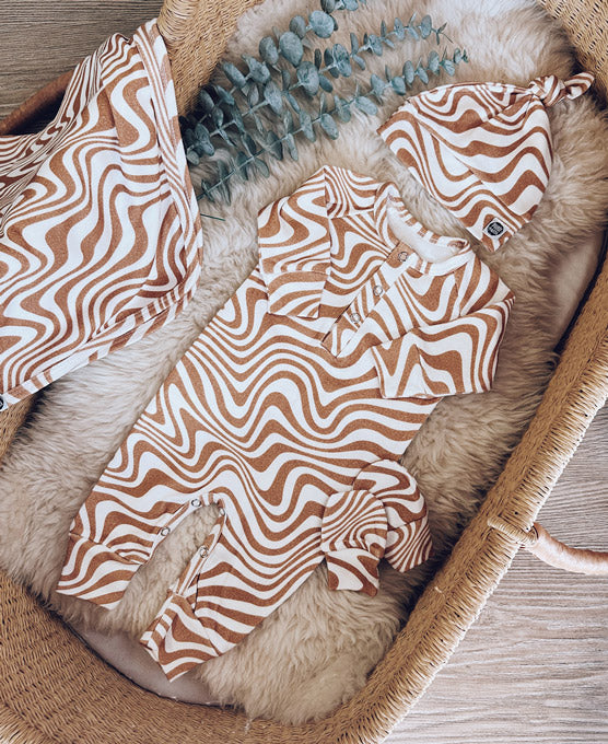 Com um padrão Swirl Caramelo, de linhas fluidas e orgânicas, este kit reflete a essência MiniMalista Baby — um design moderno e neutro que combina com qualquer bebê, menino ou menina.