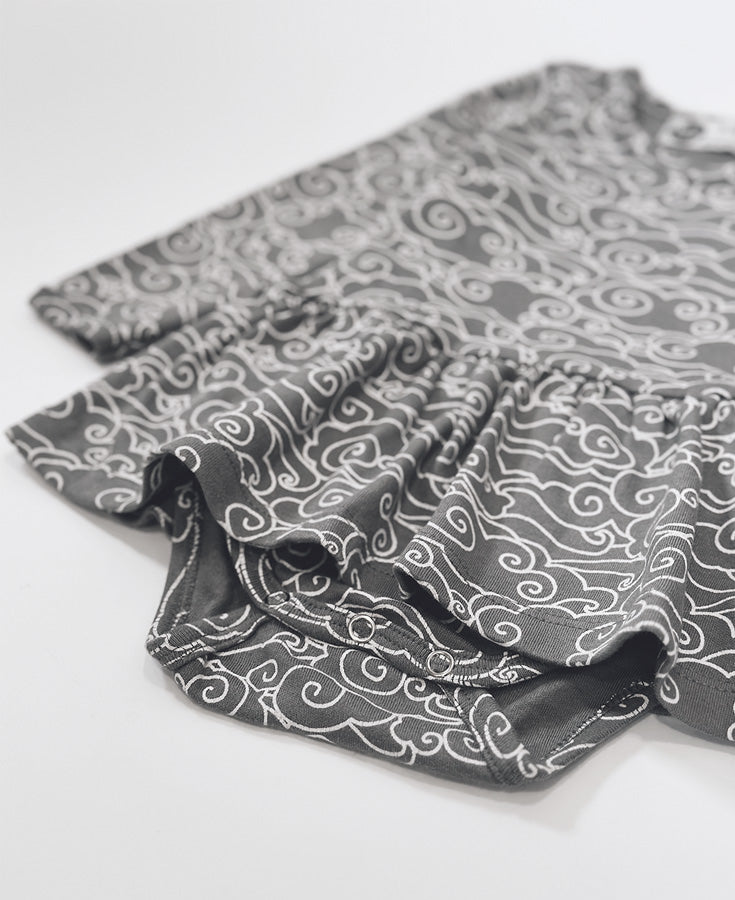 A estampa Dreamy nasceu da ideia de um céu cheio de personalidade: um fundo cinza mais intenso que traz sofisticação, enquanto as nuvens mantêm a leveza e a suavidade que combinam com a infância. É diferente, marcante e ao mesmo tempo delicado.